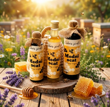Medeni ocat je jedinstveni prirodni eliksir nastao spajanjem meda i tradicionalnog procesa fermentacije, koji stvara osvježavajući, lagano kiselkast napitak bogat enzimima, mineralima i prirodnim kiselinama. Za razliku od klasičnih octeva, medeni ocat ima nježniji okus, topliju aromu i dodatnu nutritivnu vrijednost zahvaljujući medu koji mu daje posebnu punoću.